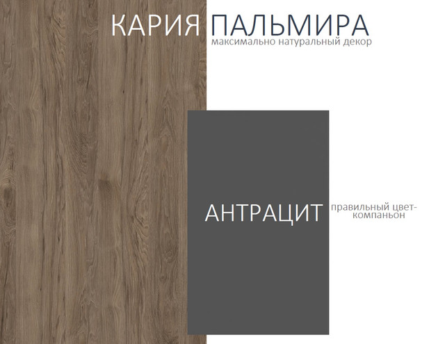 Не менее важным элементом являются трендовые декоры: Кария Пальмира и Антрацит. Эти цветовые решения выбраны не случайно – они отражают последние тенденции в мире офисного дизайна и подчеркивают современность интерьера. Кария Пальмира добавляет теплоту и естественность, тогда как Антрацит вносит ноту строгости и элегантности.