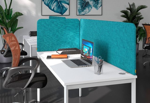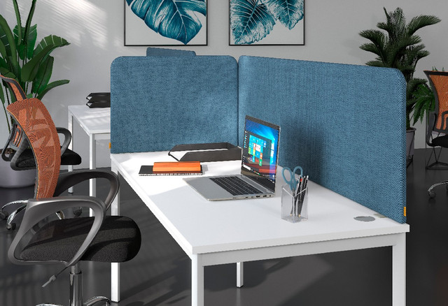 RAND ACOUSTIC - это шумопоглощающие настольные экраны. Великолепная возможность снизить уровень шума, сохраняя открытость пространства. Слой из мягкого пенополиуретана с обеих сторон перегородки эффективно поглощает звуковые волны. Обивка из долговечной мебельной ткани "Рогожка" - практична и приятна на ощупь. Кронштейны, на которых перегородки крепятся, сделаны из металла толщиной 4 мм - то есть гарантированно прочные и надежные. Плавные, скругленные углы - для максимального комфорта и безопасности. И 2 варианта высоты - для разной степени зонирования.